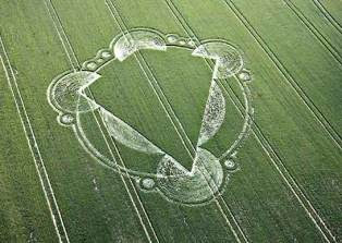 Algumas pessoas têm argumentado que os círculos nas plantações são comunicações de extraterrestres. Colheita achatada era uma vez atribuído ao pouso de discos voadores. Quando foi observado que as culturas estavam enroladas para baixo em vez de ser esmagado, o efeito foi atribuído aos campos de energia dos sistemas de artesanato 'drive. Quando as formações se tornou mais complicado, foi sugerido que os alienígenas podem estar usando feixes de energia para criá-los, ou o envio de sondas, na forma de bolas de luz, para fazê-los.